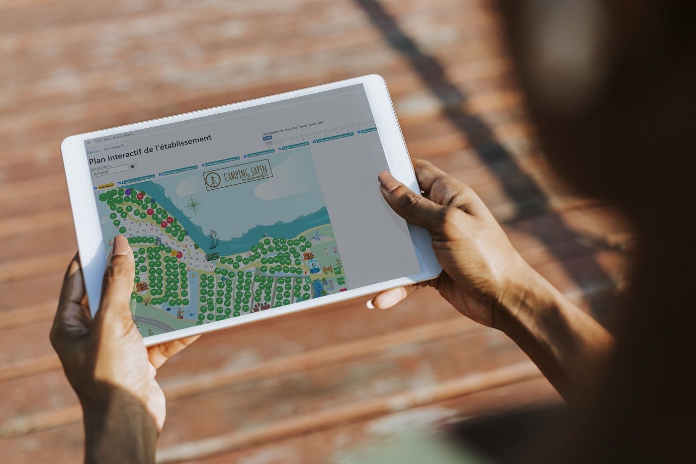 Le plan interactif du camping est réalisé par nos soins et est rendu compatible avec le logiciel par notre graphiste. De très haute qualité, vous pouvez réutiliser ce plan pour l’affichage à l’entrée ou encore l’utiliser pour le dossier de sécurité. En effet, nous y intégrons l’iconographie légale (moyens de lutte contre le feu, points de rassemblement etc).